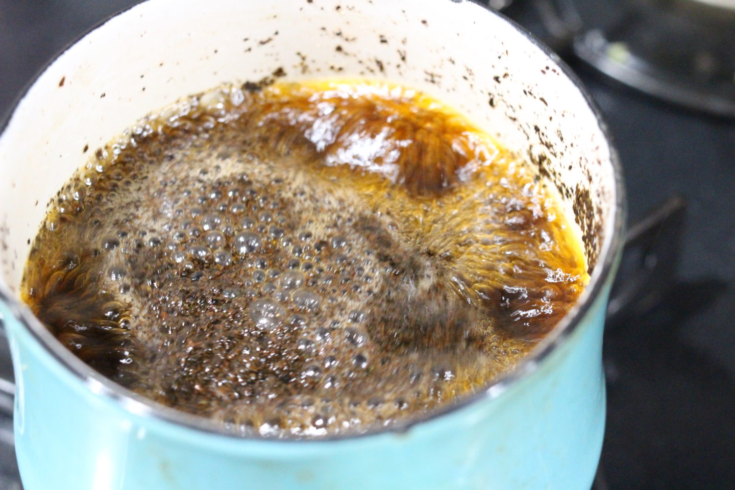 - 鍋に水を入れて沸かす。茶葉を入れて煮だす